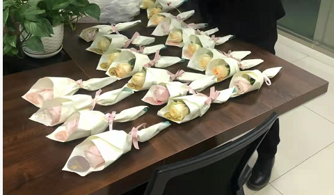 今天公司也为公司的女性准备了一些小礼物,一朵玫瑰花和一盒巧克力,祝愿每一位女性每天都能过得如花般灿烂,如巧克力般甜蜜。